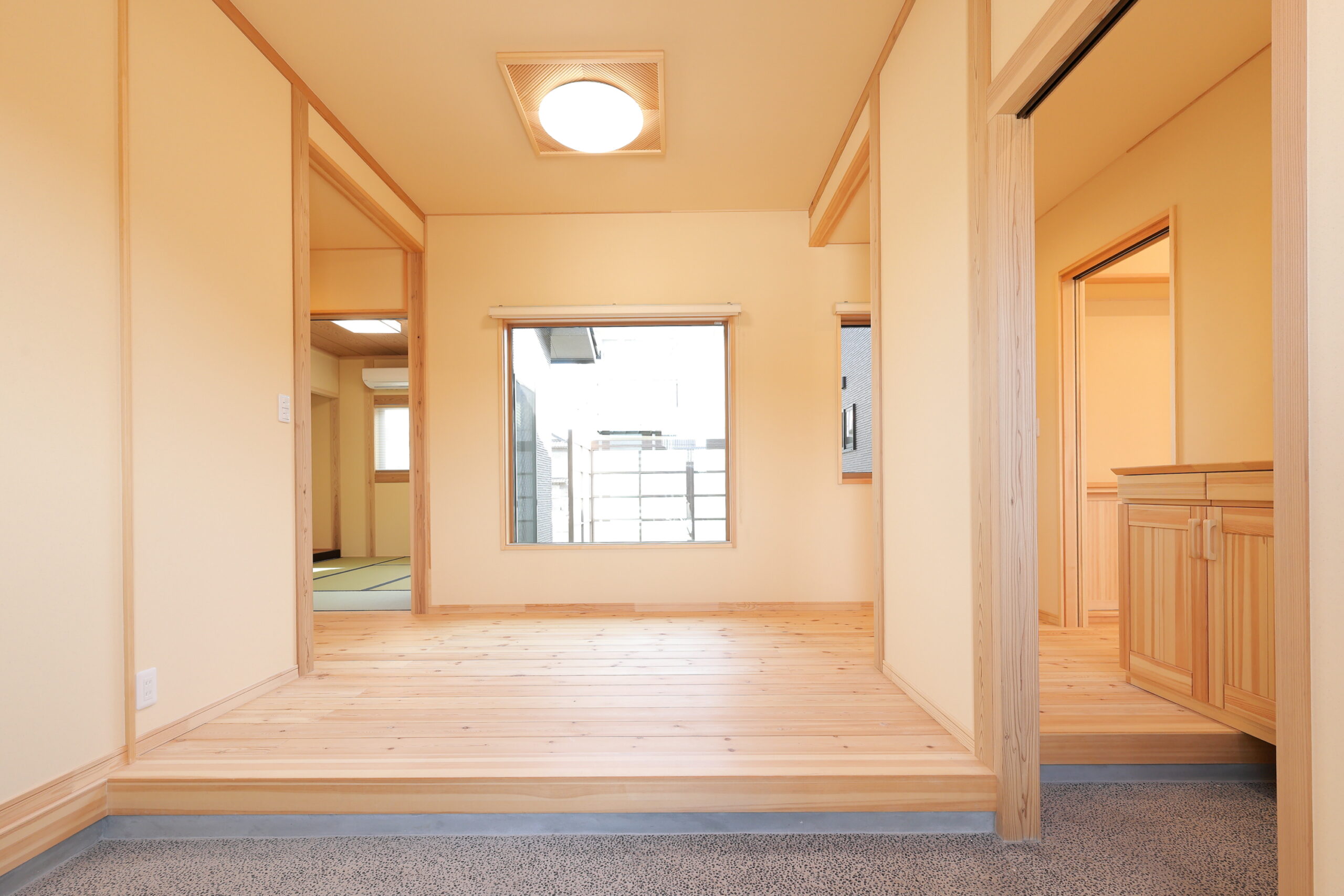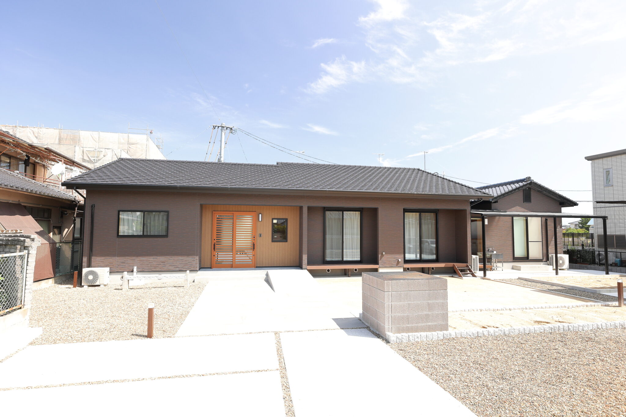 外観 玄関1 玄関2 吹き抜けリビング1 吹き抜けリビング2 吹き抜けリビング3 洗面台 和室 トイレ 浴室 家族構成 ご家族3人 延べ床面積 134.78㎡ 設計のポイント 玄関に入ると、絵画のような中庭が目に入る設計 植物がよく育つ、光と風に満ちたLDK 家中ゆったり、安心のバリアフリー 坪庭を眺めながらくつろげる浴室