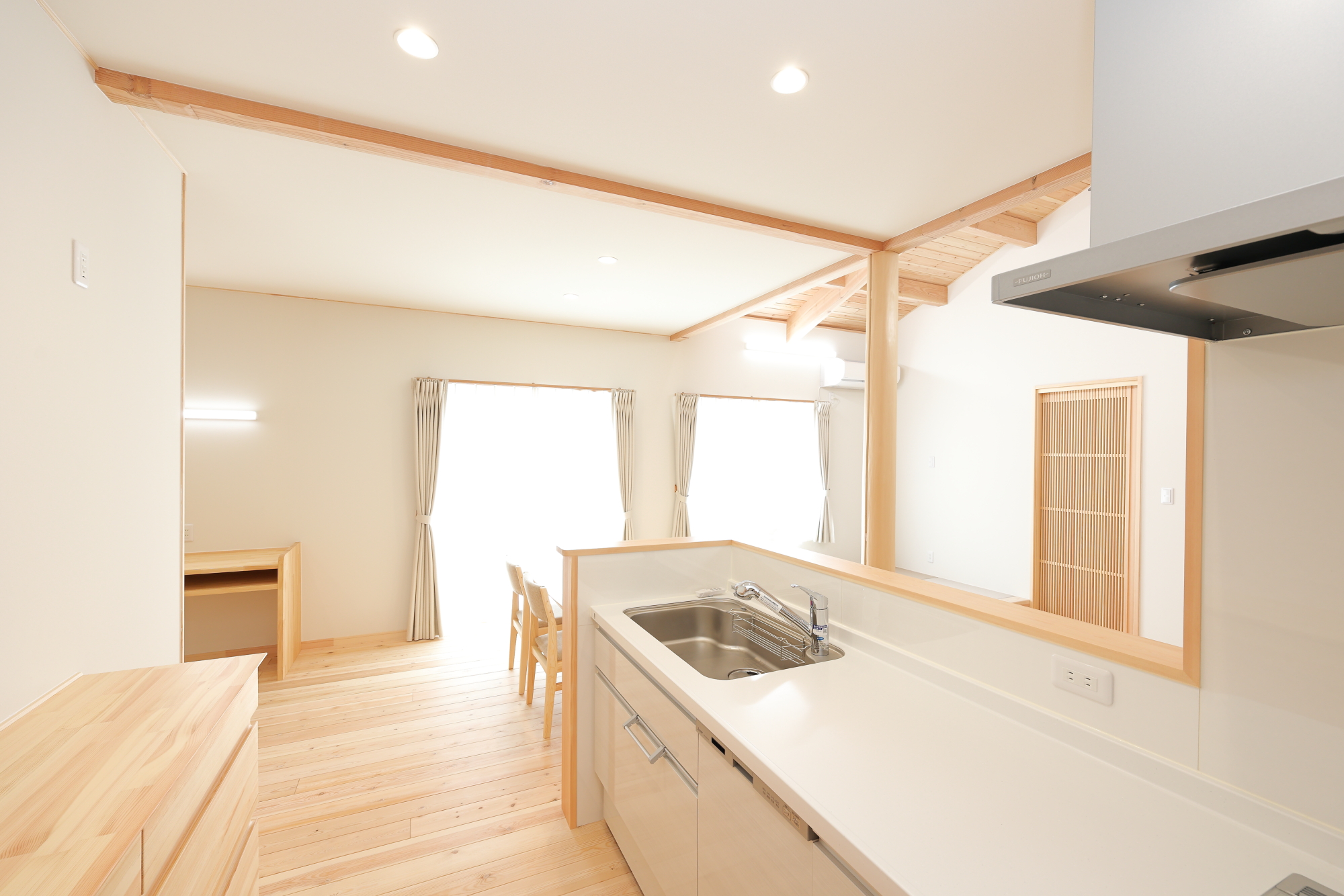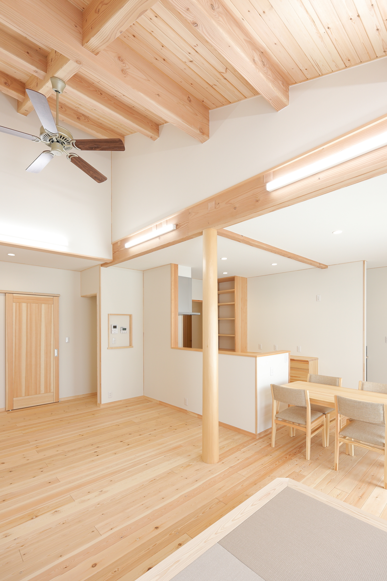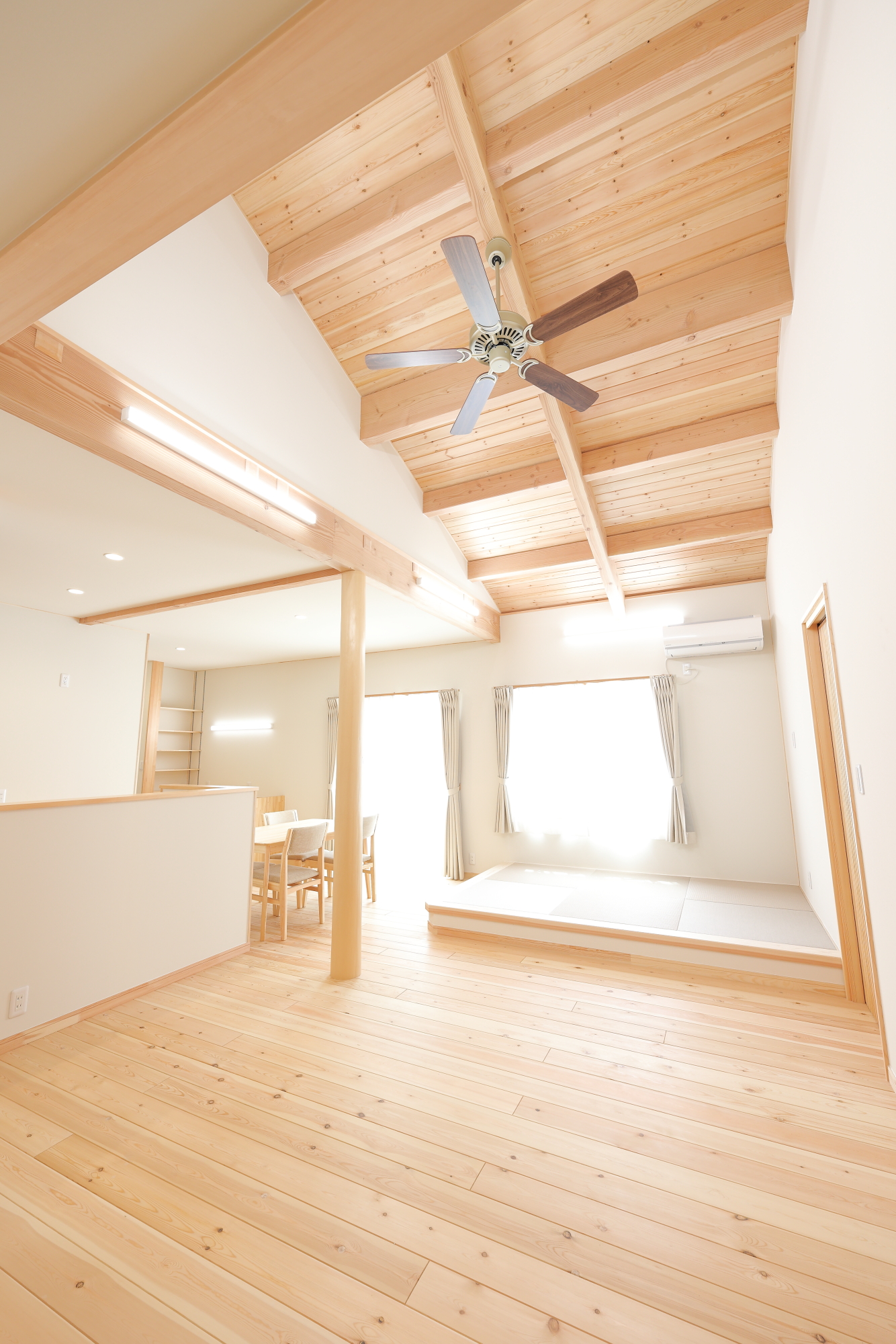 外観 リビング1 リビング2 キッチン リビング3 書斎スペース 洗面台 ランドリールーム トイレ 浴室 家族構成 ご夫婦+お子様1人 延べ床面積 108.86㎡ 設計のポイント 斜天井リビング 小上がり畳スペース ウォークインクローゼット 脱衣室+ランドリースペース