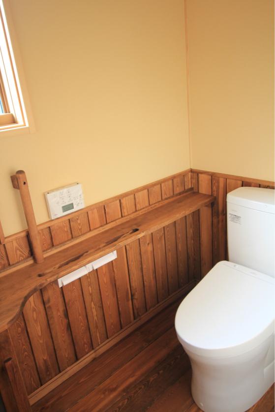 無垢の床板とココア色に塗装した腰壁で古民家風にリフォームいたしました。