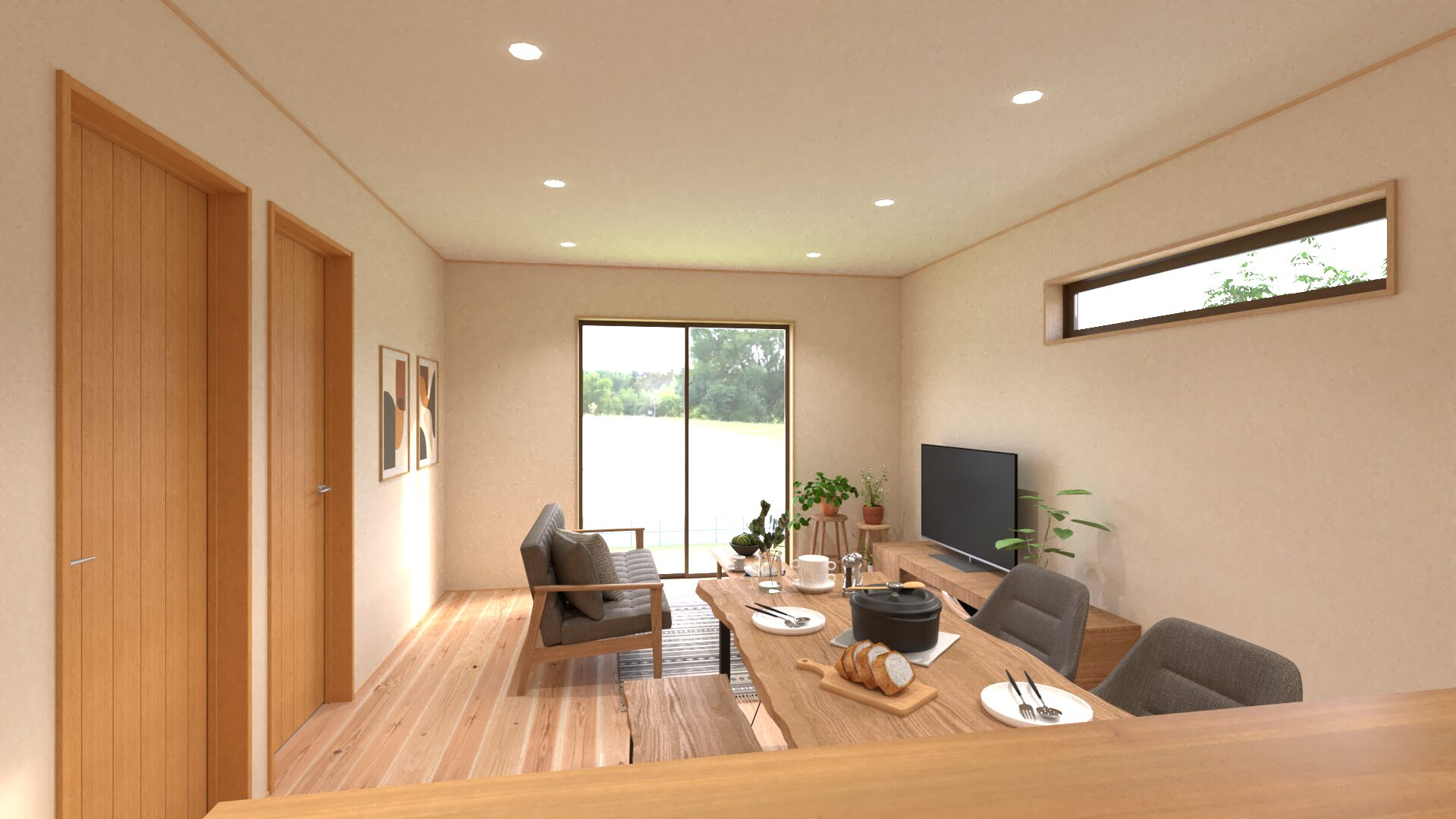 大きな窓から差し込む光と、無垢材の温もりに包まれて、